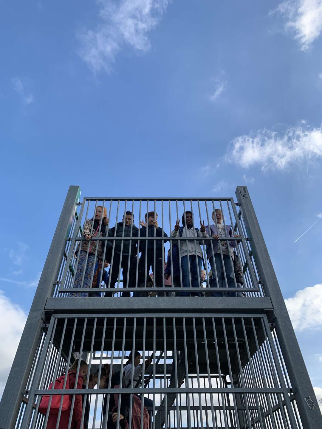 Na een informatieve start gingen we, met een kar vol spullen, naar de uitkijktoren. Onderweg passeerden we al één van de Schotse Hooglanders. Eenmaal bij de toren kregen we de benodigde spullen en verspreidden we ons in groepen over de Staart. We leerden over de bomen, de dieren en hun uitwerpselen….